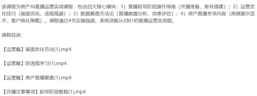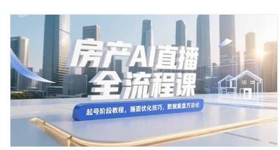 房产AI直播全流程课,起号阶段教程,画面优化技巧,数据复盘方法论