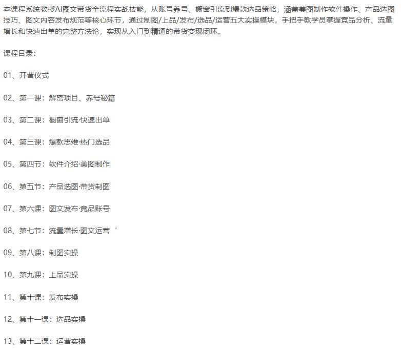 AI图文带货速成课,养号引流秘籍,爆款选品策略,美图制作全流程