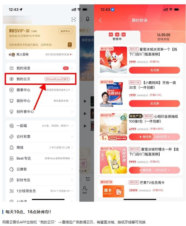 网易云音乐看多次广告兑实物