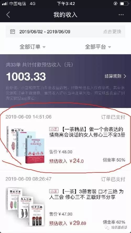 或者下面的一套书,三本书,48元和佣金24元,也很好的转化了。