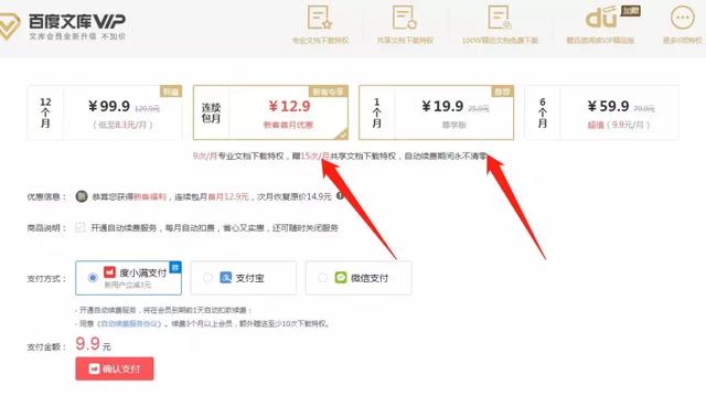 我们上传文件后,其他人会在需要时下载。然而,一些文档需要由成员重新充电才能下载。例如,百度图书馆连续几个月每月收费19.9元,每月收费12.9元。