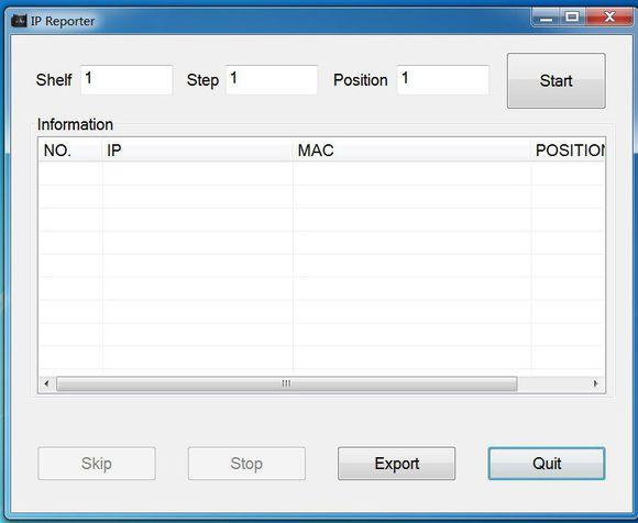 解压缩下载的文件并打开IPReporter程序。点击“开始”,然后按住矿用机器的IPReporter按钮,按一秒钟后释放。