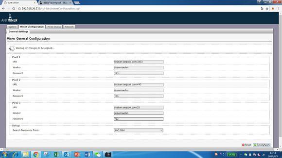 在“工人”(意思是矿工)栏中,只需填写蚂蚁矿坑中新创建的矿工的姓名。这三个都是一样的,密码可以自己设置。单击右下角的保存和应用,等待设置完成。
