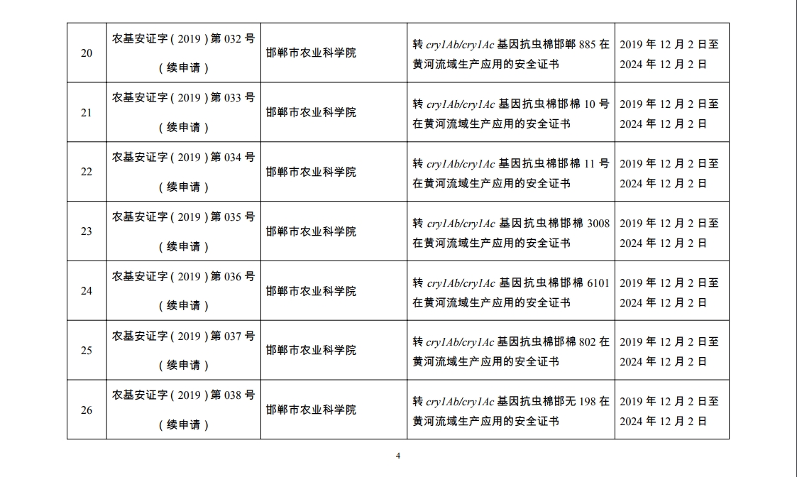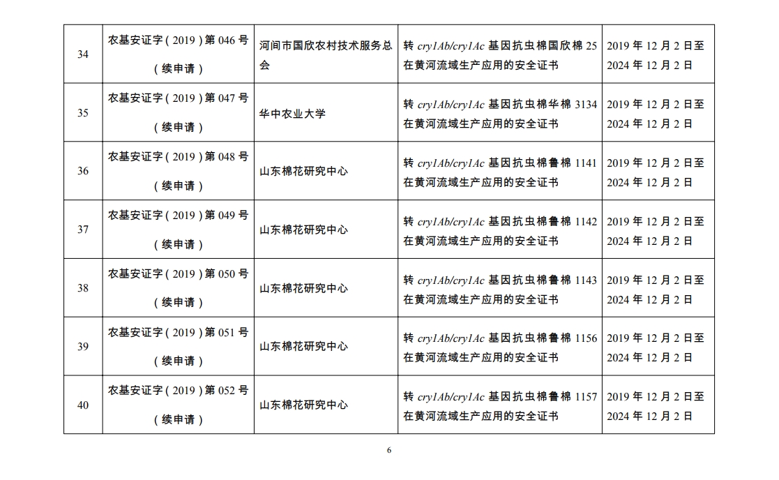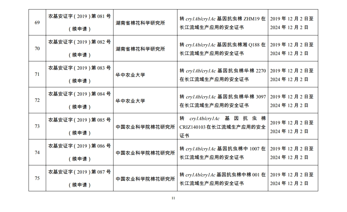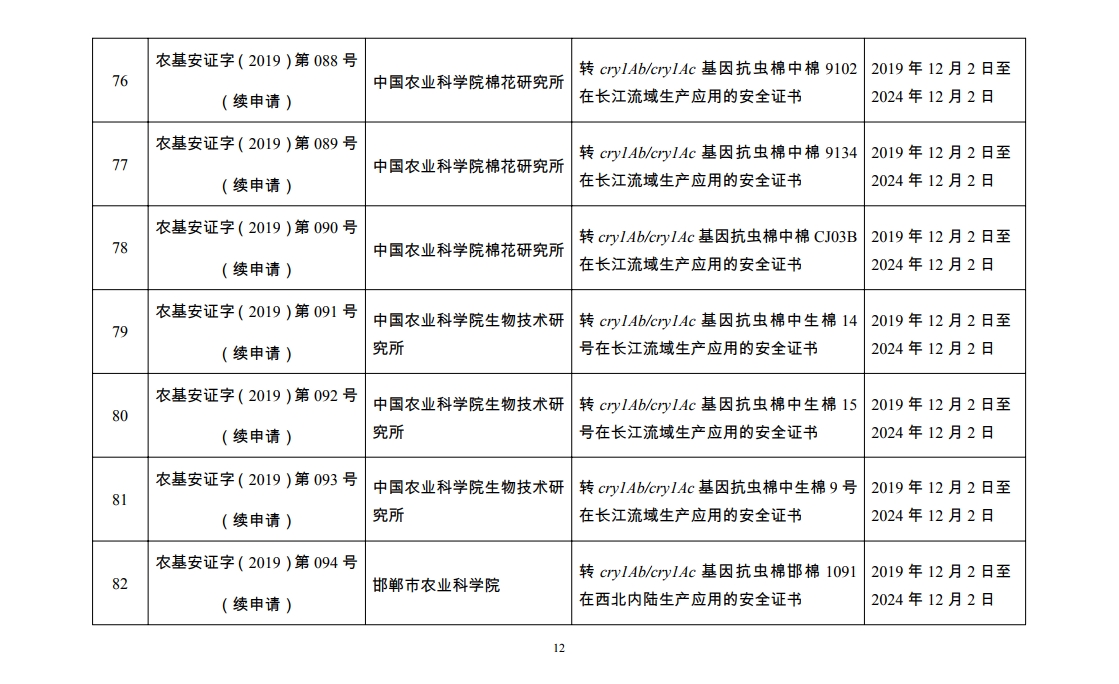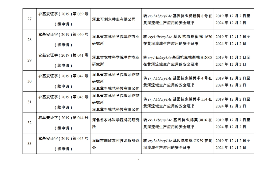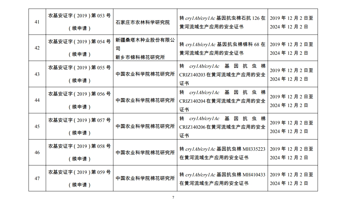 原标题:2019年农业转基因生物安全证书批准清单