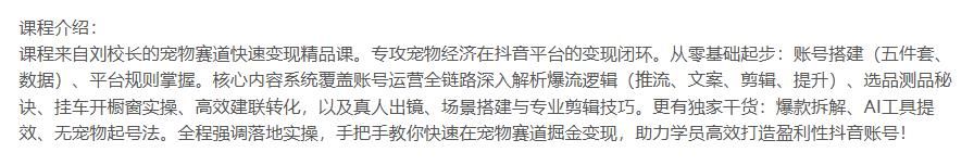 宠物抖音变现课,账号五件套搭建,爆流逻辑解析,挂车转化实操