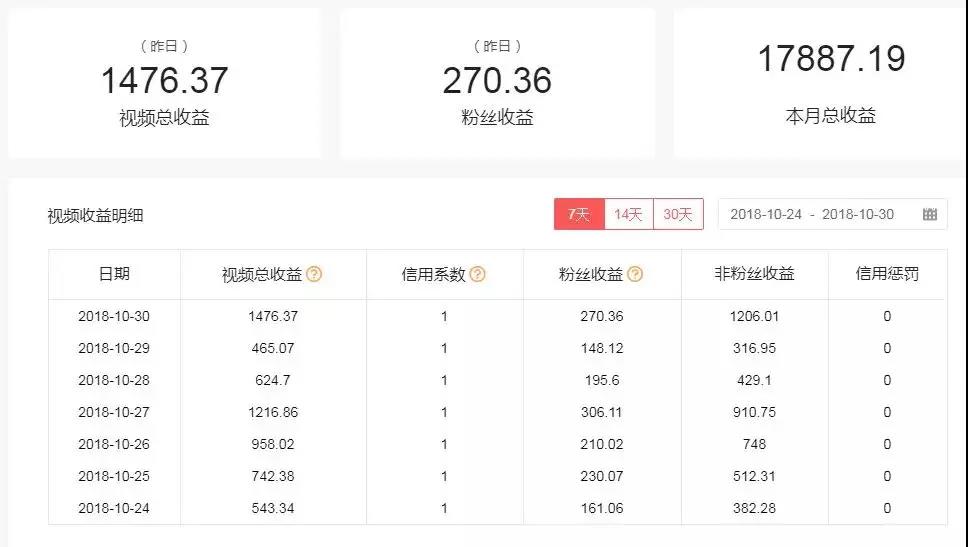 企鹅的话,因为还需要再养养,所以收益还不是太高,一周1000多,其它平台比如趣头条,大鱼号,一点资讯等收益确实有点难看,不过满打满算,一组账号的收益大约是在3万左右,而一个人,可以同时操作两组这样的账号(工作时间9小时左右)