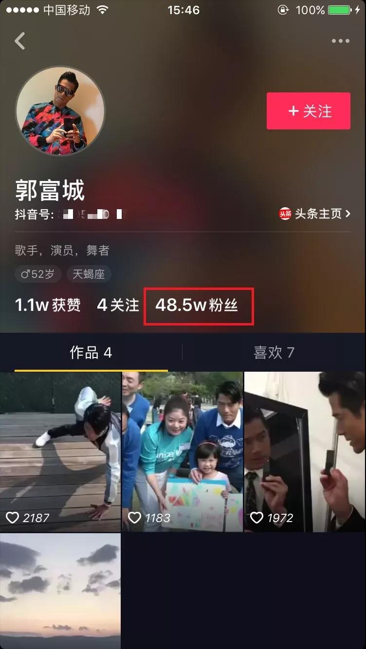 一个20万粉丝的抖音账号价值就能有这么多。而“郭富城账号”已经获得了48万的粉丝,只需要再对阅读量、点击、评论包装一下就可以卖出一个不菲的价格。