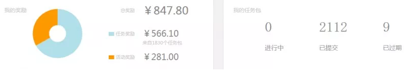 完成答题后点击左上角菜单中的我的,在我的任务已提交菜单下显示有刚才完成的任务列表,等审核通过后,这里就会显示奖励金详细金额。