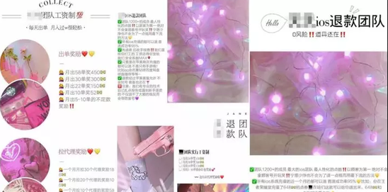 中新经纬搜索发现,与上述退款团队相似的组织不在少数,这些团队在招收代理的同时往往贴以“一单利润成百上千”、“专业退款”、“代理兼职”、“服务用户”等标签,有的团队单日退款额便有近万元。