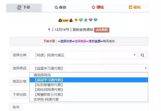对于生产代刷网课的行业,您可以快速吸引学生的粉末并获取利润。该项目的单价不高,但效率高,裂变速度快。