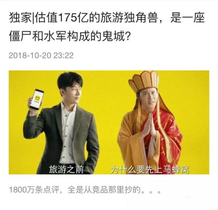 根据这篇文章,旅游社交分享网站"的2100万条"真实评论"中有1800万条是从竞争对手那里复制的,比如评论和机器人。