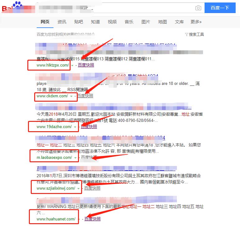 从某些词的搜索结果来看,PC端搜索结果的网页样式,表面仍是单页,但我查看快照后,发现都是一些企业站群模板,从这一点我们可以看出,如今的大人站群套路,是利用企业站群进行操作的,在企业站头部嵌套进单页,因为如此,才会导致我们直接点击进入时,看到的时单页的样式。