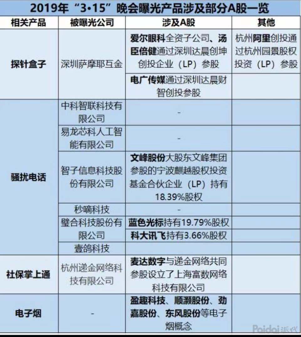 晚会曝光企业名单相关信息