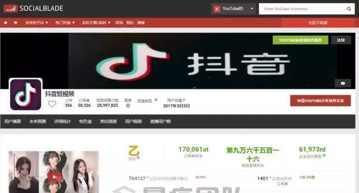 2017年3月3日注册,共上传了356个视频(截至2019年1月25日)。用户数为58,000,用户总数为2952万。根据每美元收入,总收入超过2.9万美元,约合人民币21万元,开户23个月,月均收入超过9000元。