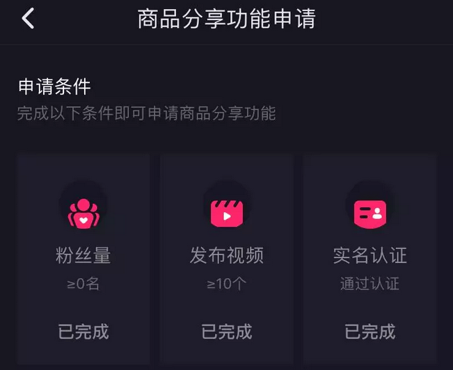 要知道最早开放产品共享功能的条件非常苛刻,你必须有成千上万的粉丝才能达到应用条件,然后降到1000粉丝,直到现在你可以免费申请免费粉丝,所有各种标志颤音正在支持淘宝客人。