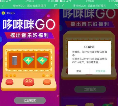 QQ音乐免费抽7天-1年豪华绿钻及10元抵扣�坏壤衿坊疃�