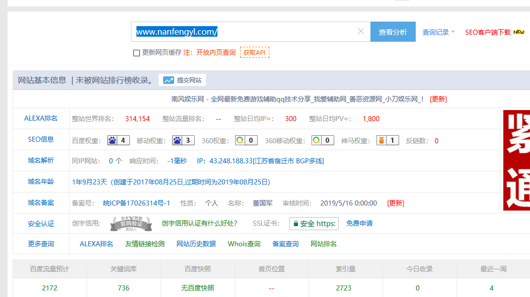 其实像这样的网站排名并不难做,更难做的其实是它的口碑优化,你要让站长们认可你的这个站的所有数据,认可你的这些信息的准确性。同时它是非常准确的,但是站长们不爱用也不行,要符合用户习惯。