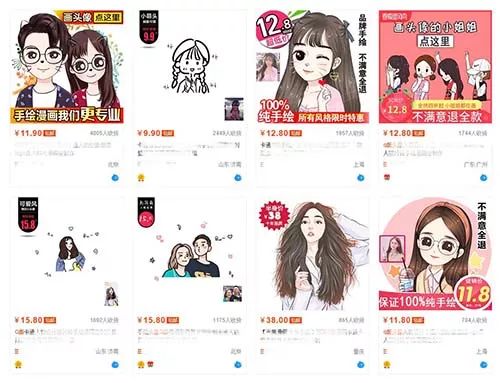 接上去咱们再来看看某宝上相干的产品销量,以下是我检索“Q版头像”对应的搜寻后果: