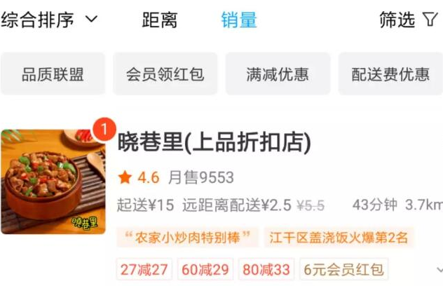 我定位到了高沙,杭州外卖单量最密集的几个地方之一。按销量排名,我们挑一家销量排前几的店,店里的热销款价格为18.88,一般顾客会用5~6元的超级会员和品质联盟红包,这些红包需要商家承担3元。平台佣金保底3.5元,商家减免配送费3元,好,我们算一下商家到手多少钱,18.88-3-3.5-3=9.38,提点按10%计算,代运营一单能拿到9毛,一个月15000单,这样的头部商家,给代运营公司的产生收入为13500。