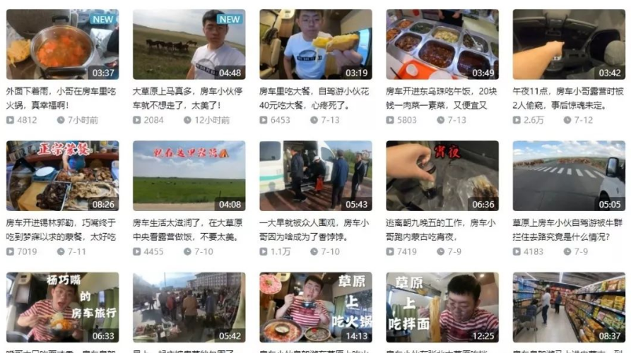 它的视频主要是关于房车生活日志和旅游景点,长度大多在30分钟以内。