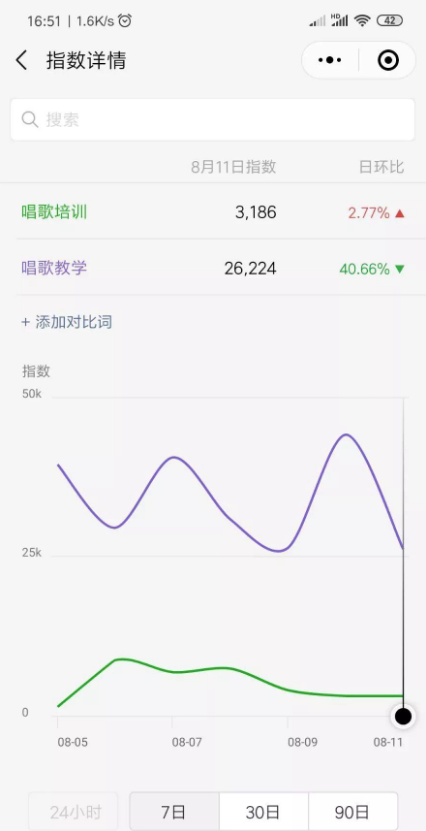 从以上两组数据可以看出,微信上歌唱课程培训的搜索量会更大。百度的搜索量只有几百。尽管百度上的数据很少,但排水比微信上的容易。微信的排水需要通过公开号码进行。