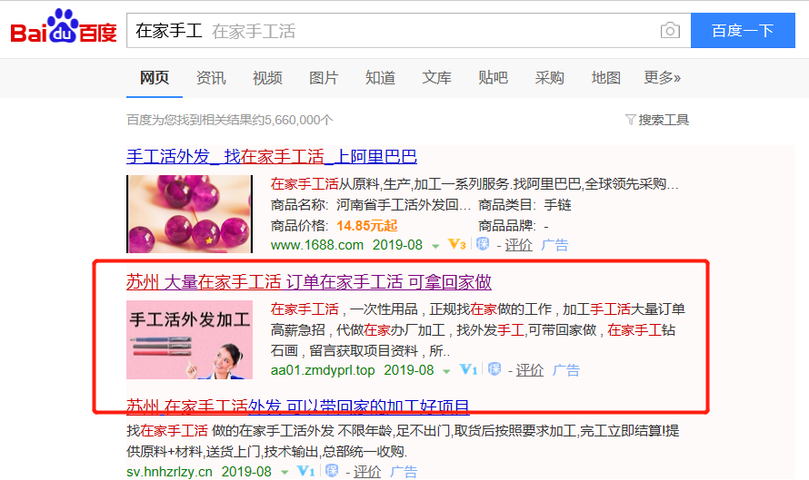 像是这种还有人百度竞价,可见里面的利润有多大,当然不排除有少量正规的手工活,但是一旦涉及押金和物料资金大家还是要警惕,很容易被骗。你也不要觉得自己的防诈骗能力很强,在设计这个圈套的时候别人可是设计周密,搞不好还有一个团队的头脑风暴过,你能想到的别人都能考虑到。