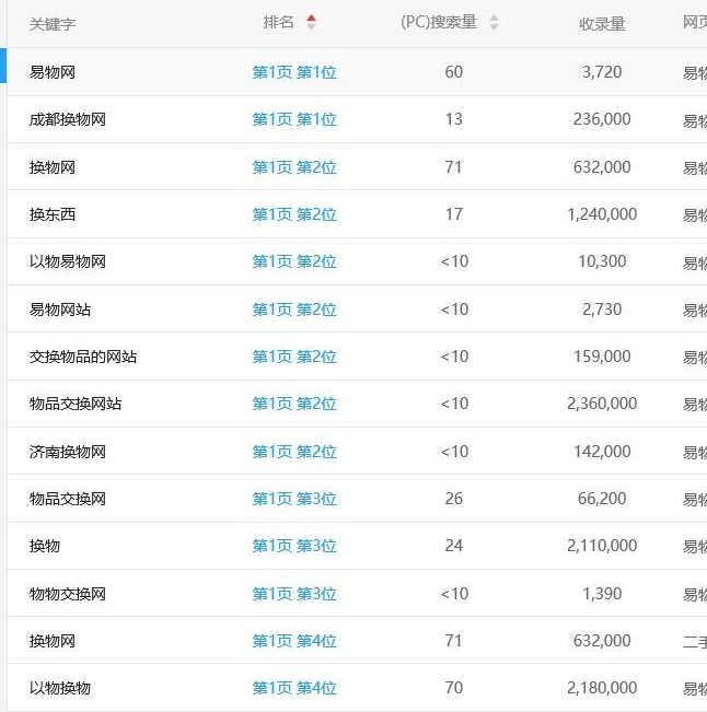 百度搜索跟物换物相关的关键词如:换物网、交换网、以物换物等可以发现,独立网站的竞争对手不过一手之数,寥寥无几。