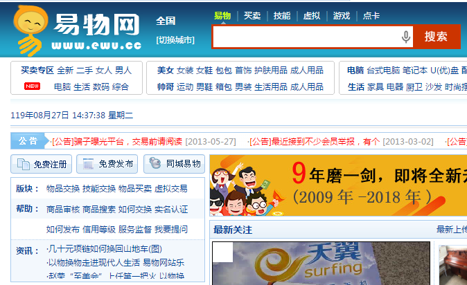 首先,我们要明确以物换物按照中国的整个市场来说的话,空间一定不会小,但是以物换物是一件非常麻烦的事情,并且大量的用户都被58同城分类信息平台给抢走了,所以我们自己如果做平台的话,是100%做不大的,也就是说这个平台从一开始注定了只是一个小网站,这是市场定位的问题,也是网站定位的问题。