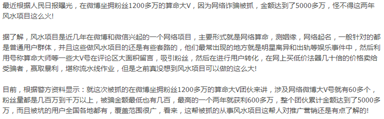 今天一则新闻在网赚圈刷屏了,那就是某风水团队被抓。