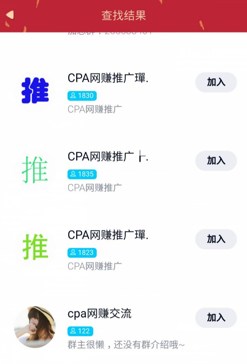 首先你需要联系CPA网赚项目发布人,从他们手里得到你个人的推广链接。而找CPA网赚项目发布者也很简单,直接在QQ群里搜索就能找到。