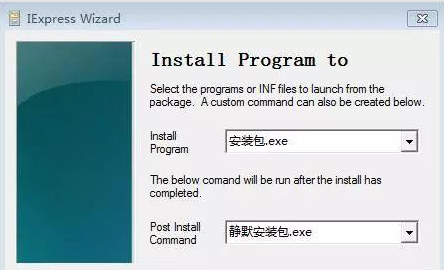 然后点击下一步,在下拉选项框里选择我们刚刚添加的安装包,Install program选择要提示用户的安装包,post install command选择要静默安装的安装包,然后继续点击下一步,选择安装的方式。