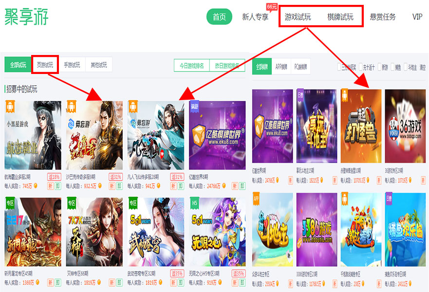 好消息:注册送1元,完成新人任务可获得10元奖励,打开上面聚享游链接,填写注册信息完成注册,然后登陆账号,你会看到导航栏的【游戏试玩】,通过这里就可以开始试玩【网页游戏】赚钱了。这里有大量的网页,大概有90款左右的游戏,供你选择,大部分游戏都可以赚500元,甚至更高。另外可以通过【棋牌试玩】试玩棋牌,这里有20多款棋牌游戏,包括斗地主,麻将,天天捕鱼等,每款游戏是的奖励至少在千元以上,有的在万元以上。这里可以赚钱的游戏加起来有上百款,不管是你喜欢玩网页游戏,斗地主,打麻将等,都可以挣钱。1万U币=1元,满2元就能申请提现。