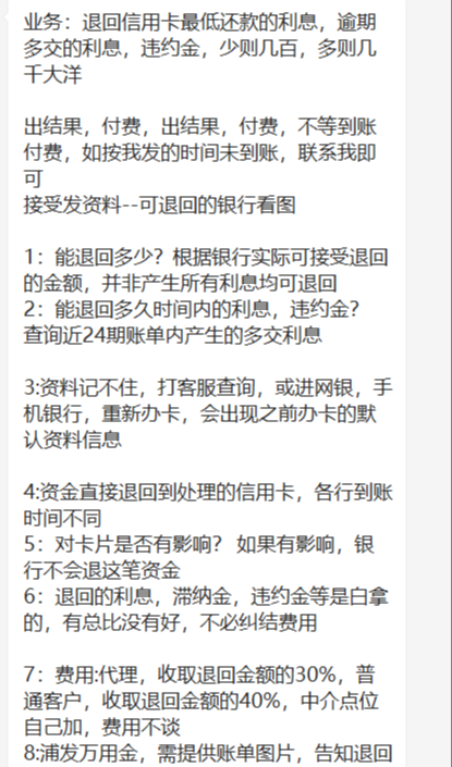 不过为粉丝着想,哥也不能随便就推这种业务,经过哥的一番研究了解,发现这个信用卡退回违约金这一块业务里面,水也比较深。