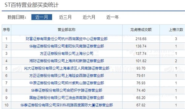 龙虎榜数据来看,近一个月时间内,多家实力游资出现在ST百特营业部买卖席位上,其中不乏知名游资机构进场抢筹。