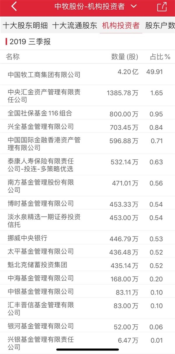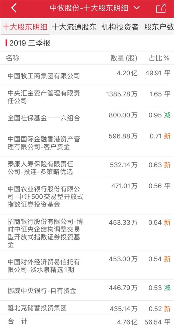 中牧股份实控人为中国农业发展集团有限公司,股东中有中央汇金资产管理有限责任公司、全国社保基金一一六组合、泰康人寿保险有限责任公司的产品,还有博时、太平洋、华夏等多家基金公司的产品。