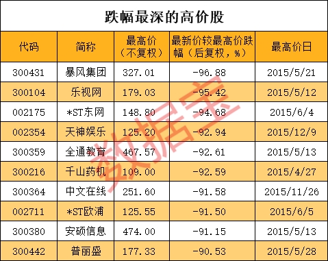 半数高价股股价已腰斩