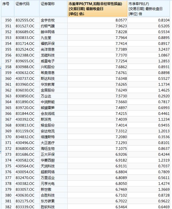 事实上,很多新三板的估值水平并不高。不少股票的市盈率水平都在20倍以下,还有不少破净的公司存在。若这些公司的估值得以修复,收益亦是相当可观的。