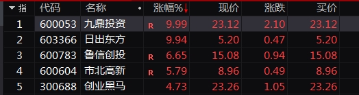 与此同时,创投板块亦集体大涨。九鼎投资、民丰特纸、日出东方封板,鲁信创投大涨。