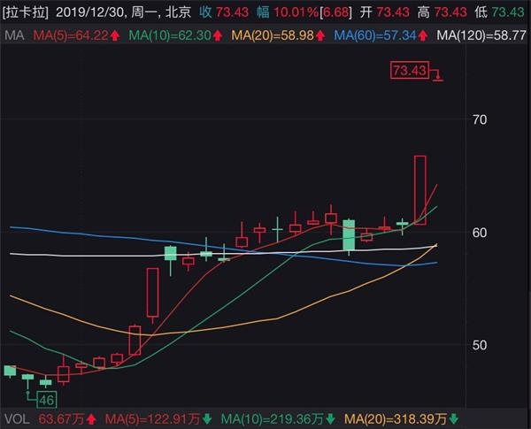 这则“豪气”的高送转预案,也使拉卡拉股价在12月27日下午开市复牌后秒拉涨停,并在今日开盘收获“一”字涨停。