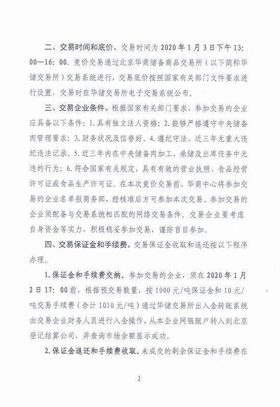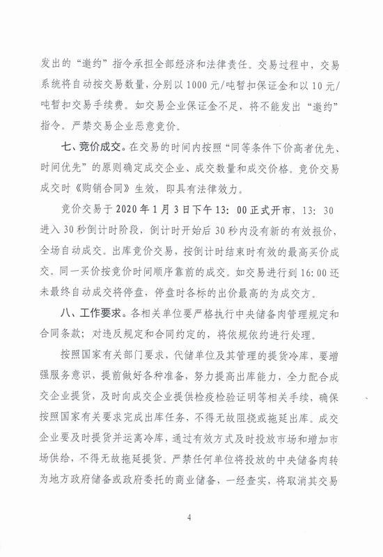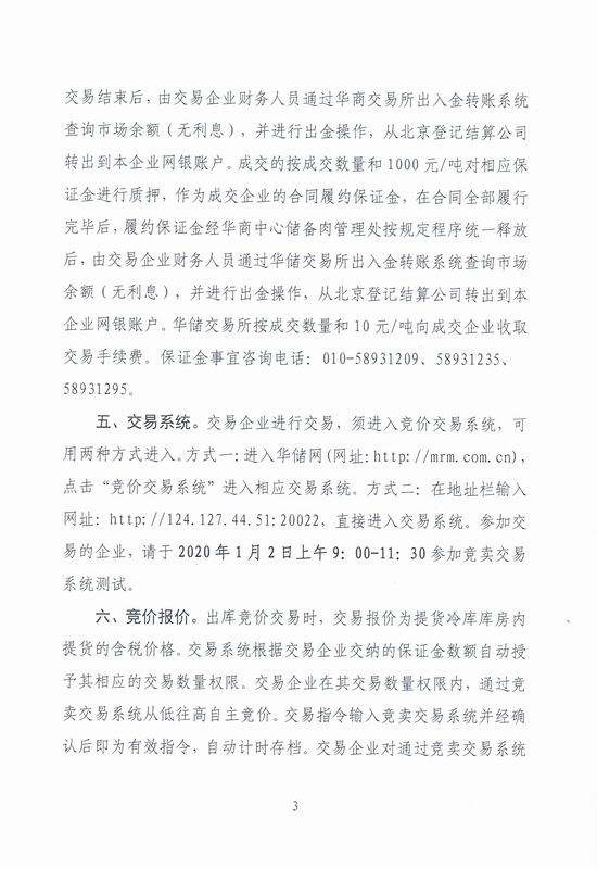 华储网发布2020年1月3日中央储备冻猪肉投放竞价交易有关事项的通知,投放3万吨。