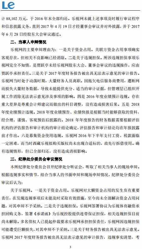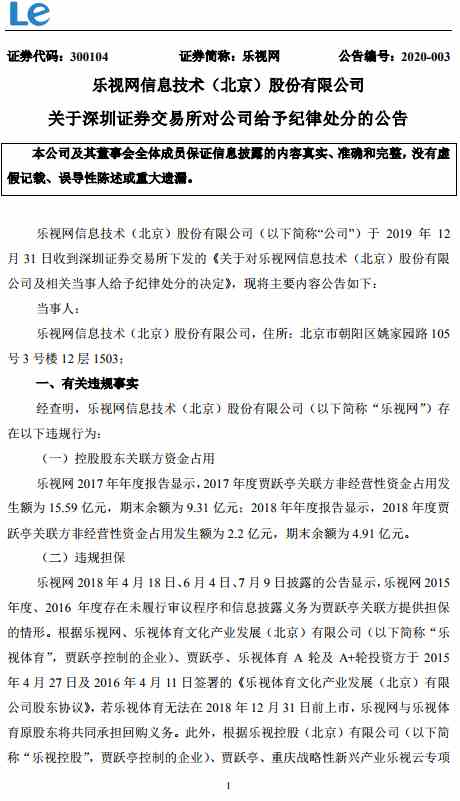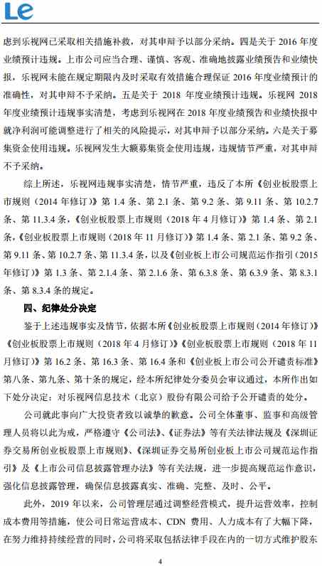 乐视网:深交所对公司给予纪律处分