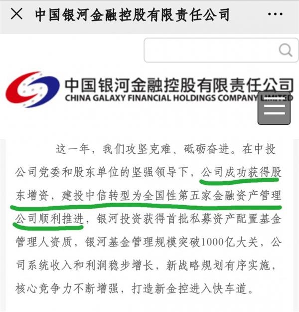重磅!银河金控董事长新年贺词露玄机:第五家全国性AMC要来了